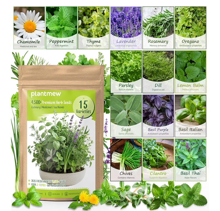 15-Pack Heirloom Herb Seed Kit – 4,500+ Non-GMO Seeds for Indoor & Outdoor Gardening15-Pack Heirloom Herb Seed Kit – 4,500+ Non-GMO Seeds for Indoor & Outdoor Gardening