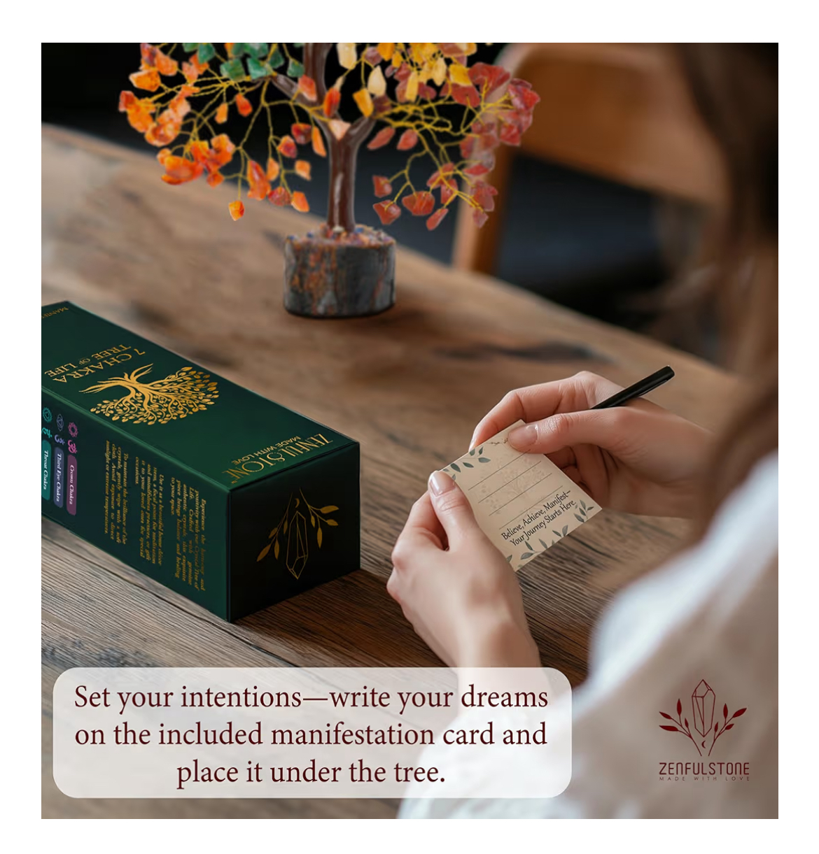 Each tree arrives folded for safe shipping; simply shape the adjustable branches to create your perfect display. Beautifully packaged with a free manifestation card and healing eBook, it’s ready to gift for Mother’s Day, Father’s Day, weddings, housewarmings, or birthdays.