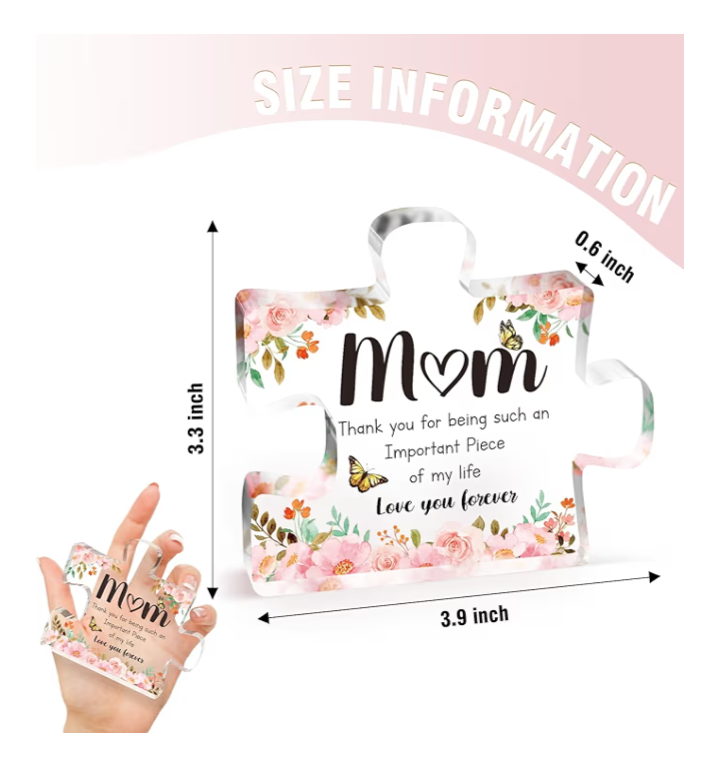 Gifts for Mom – Engraved Acrylic Puzzle Piece Keepsake from Daughter or Son | Mother’s Day, Birthday & Christmas Gift for Mom (3.9 x 3.3 in)Gifts for Mom – Engraved Acrylic Puzzle Piece Keepsake from Daughter or Son | Mother’s Day, Birthday & Christmas Gift for Mom (3.9 x 3.3 in)