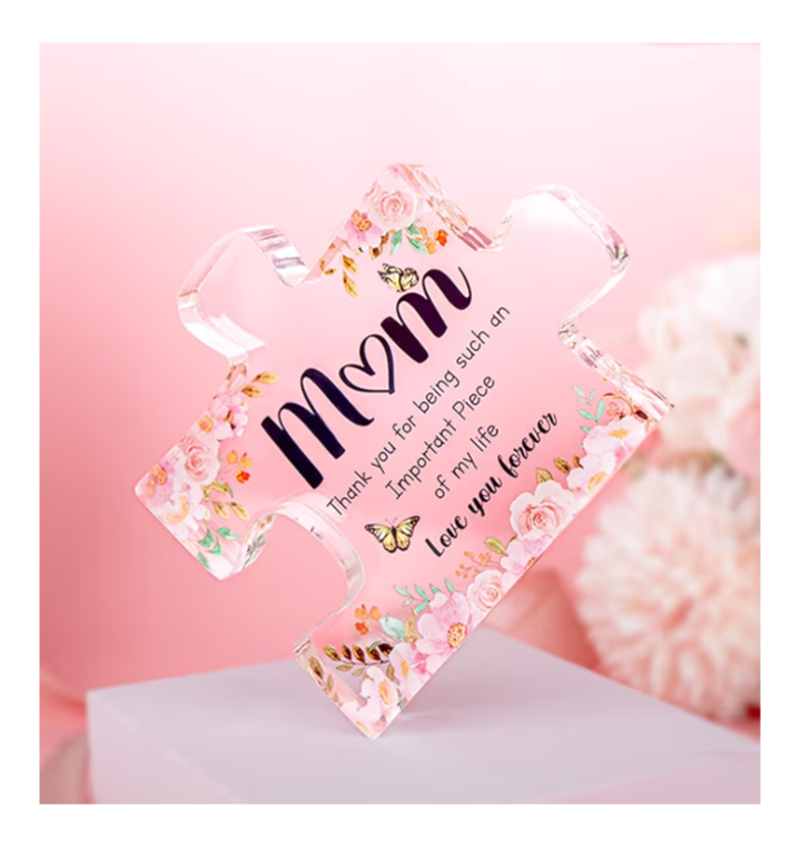 Show your love and appreciation with this Engraved Acrylic Puzzle Piece Gift for Mom, a beautiful and modern keepsake that expresses “Love You Forever.”