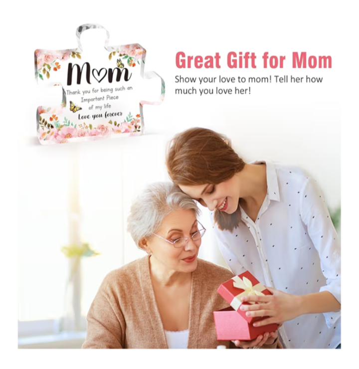 Gifts for Mom – Engraved Acrylic Puzzle Piece Keepsake from Daughter or Son | Mother’s Day, Birthday & Christmas Gift for Mom (3.9 x 3.3 in)