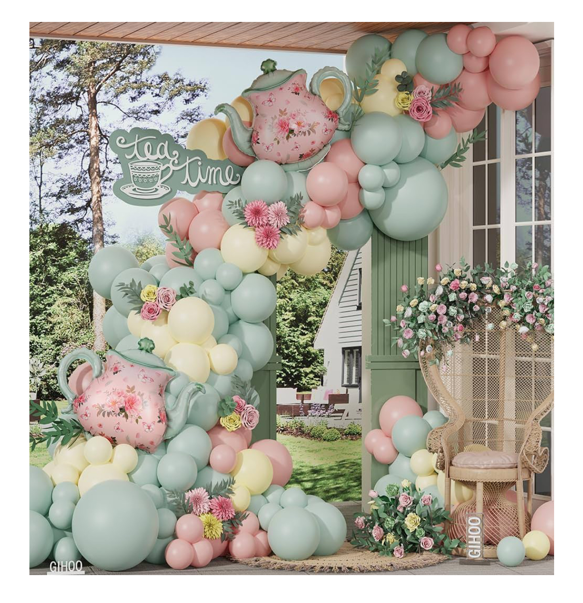 Create a whimsical, picture-perfect setting with this pastel Tea Party Balloon Arch Kit. Designed with soft pink, green, and yellow hues, and featuring charming teapot-shaped foil balloons, this kit is perfect for a wide variety of celebrations—from “Let’s Par-Tea” themed birthdays to spring garden parties and bridal showers.